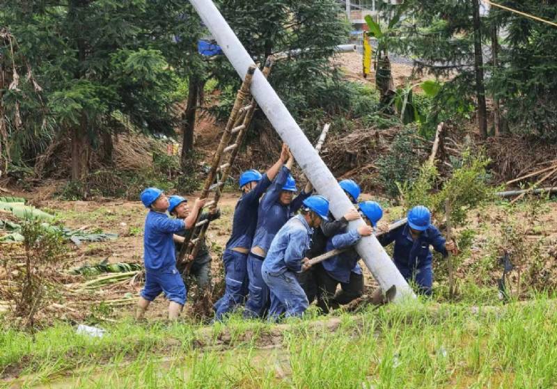 6月19日晚上,市投控集團下屬企業揭陽明利綜合能源發展有限公司落實上級工作部署,對接梅州市供電局,派駐先遣隊火速趕赴平遠縣泗水鎮開展抗災搶險復電工作。先遣隊在道路受阻難行,存在山體滑坡等自然災害風險的情況下,克服了道路不通、河流阻道、淤泥厚重等困難,不怕艱辛,主動作為,在惡劣作業環境作業中,發揮國企在應急搶修工作中展現責任擔當和鐵軍精神,采取人工搬運電力物資、人工立桿等方式,通過多日連續奮戰,6月27日上午圓滿完成支援梅州抗災搶修復電工作任務。
