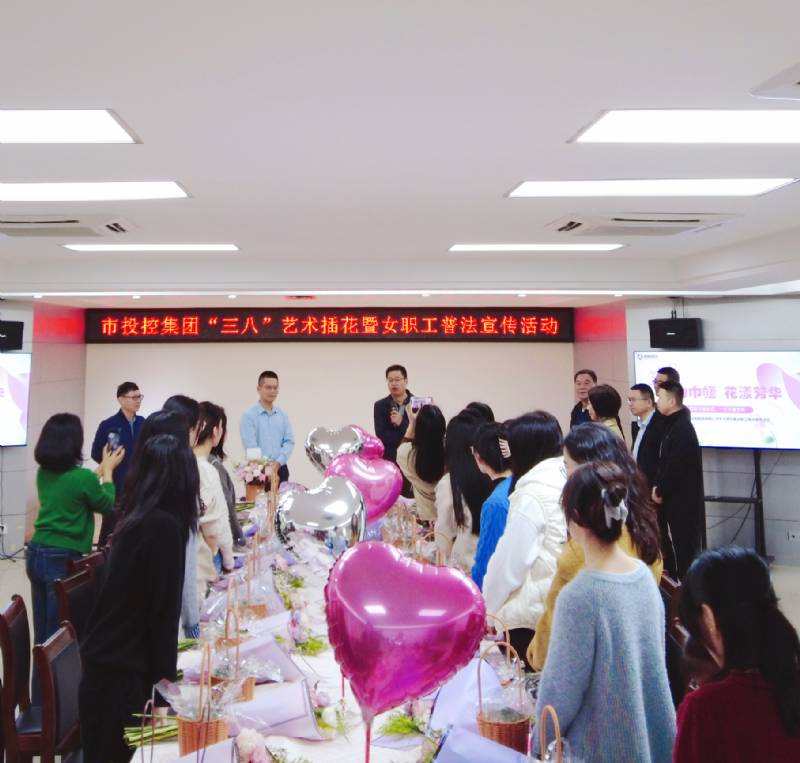 花(hua)開春暖艷陽天,巾幗(guo)芳菲相競妍。為慶祝“三八(ba)”婦(fu)女(nv)節(jie),豐富女(nv)職工(gong)精神(shen)文化生活(huo)(huo)(huo)(huo),提升(sheng)女(nv)職工(gong)藝術素(su)養,增強女(nv)職工(gong)法治意識,3月(yue)5日下(xia)午,市(shi)國資委、市(shi)投控(kong)集團(tuan)聯合舉辦“魅力巾幗(guo) 花(hua)漾芳華”藝術插花(hua)暨(ji)女(nv)職工(gong)普法宣傳活(huo)(huo)(huo)(huo)動,市(shi)國資委、市(shi)投控(kong)集團(tuan)全體女(nv)職工(gong)參加活(huo)(huo)(huo)(huo)動。市(shi)國資委黨(dang)委書記(ji)、主任(ren)林樹宏,集團(tuan)黨(dang)委書記(ji)、董(dong)事(shi)長(chang)高文閣和(he)集團(tuan)其(qi)他領導班子成員蒞臨(lin)活(huo)(huo)(huo)(huo)動現(xian)場(chang)祝賀。